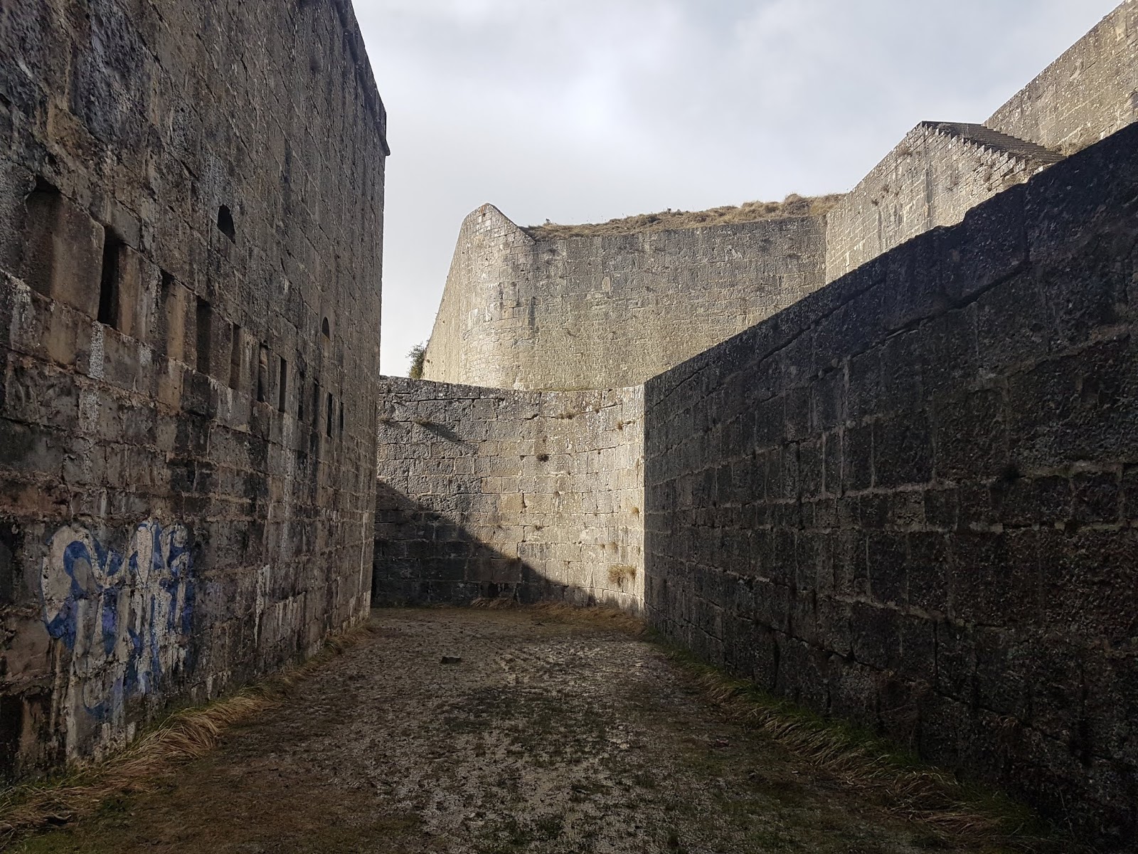 Una de las entradas da lugar a un laberíntico foso rodeado de muros.